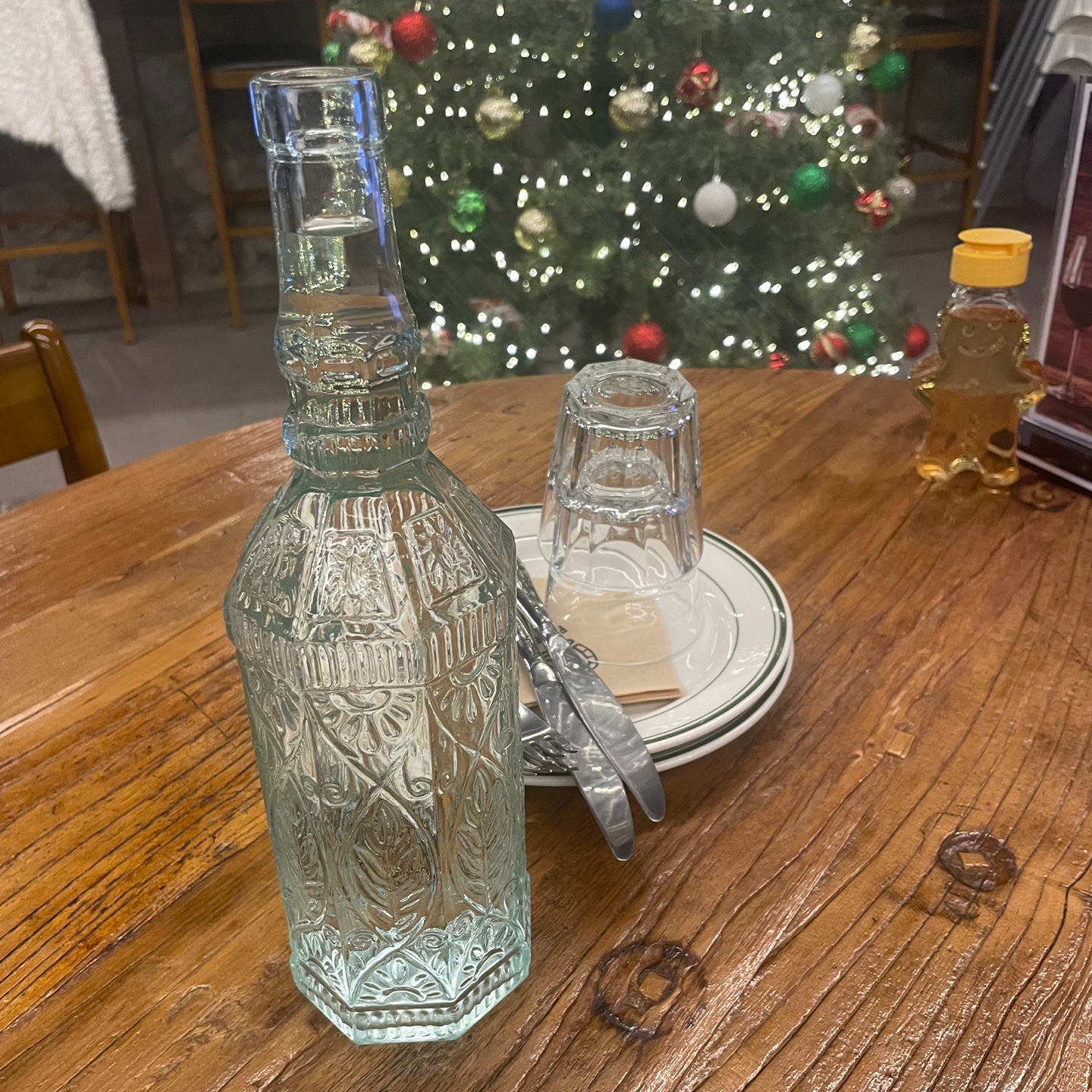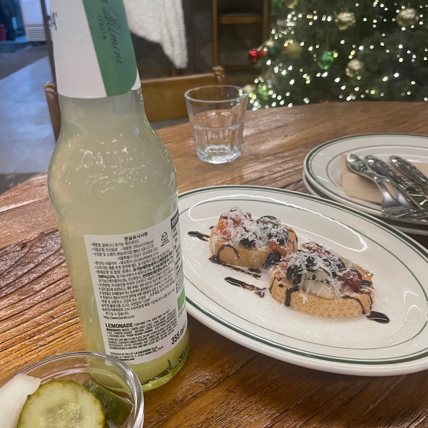 깔끔한 물병과 미리 접시가 세팅 되어있어요