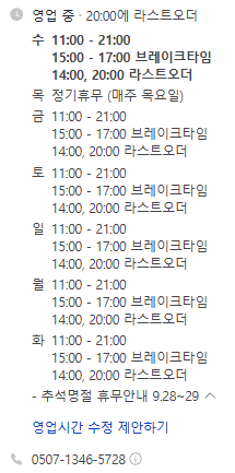 브레이크타임도 있습니다