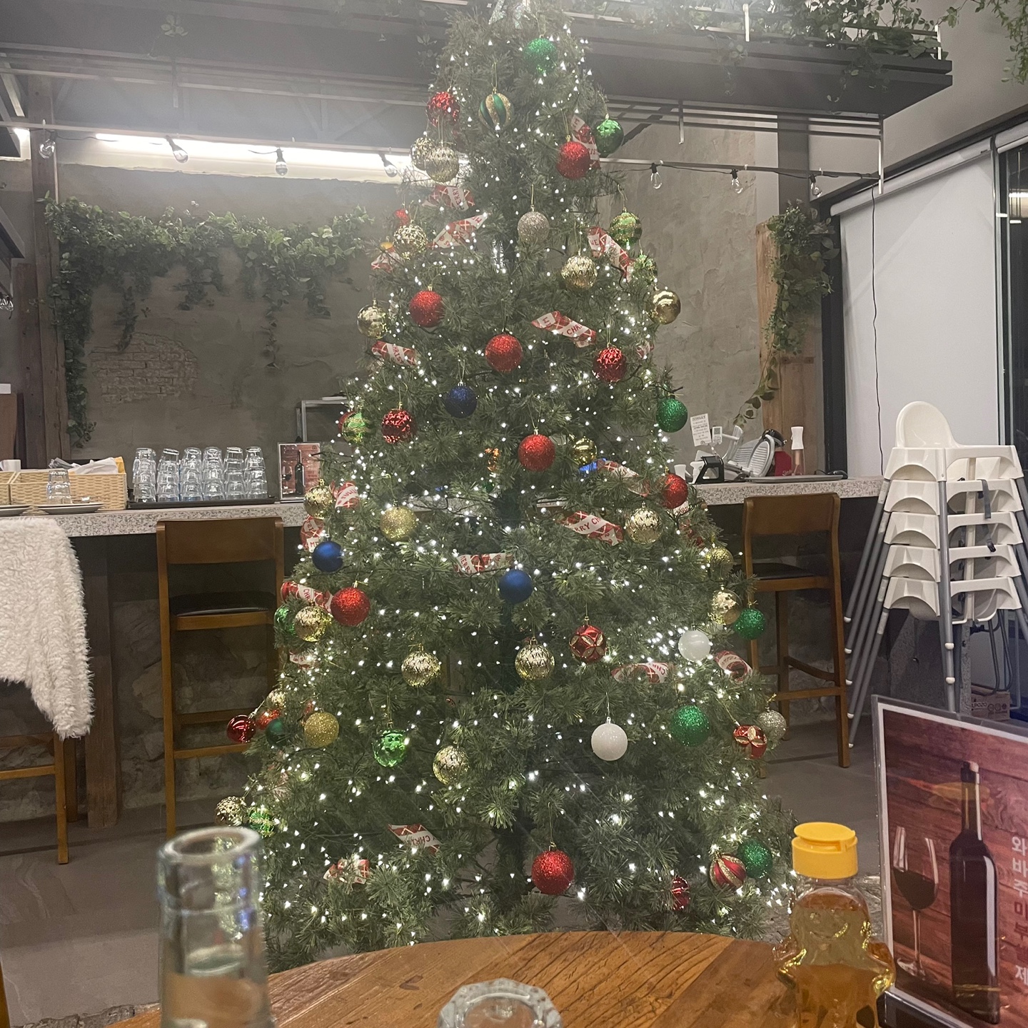 와이프가 말하던 크리스마스 트리 바로 앞에 앉았어요
