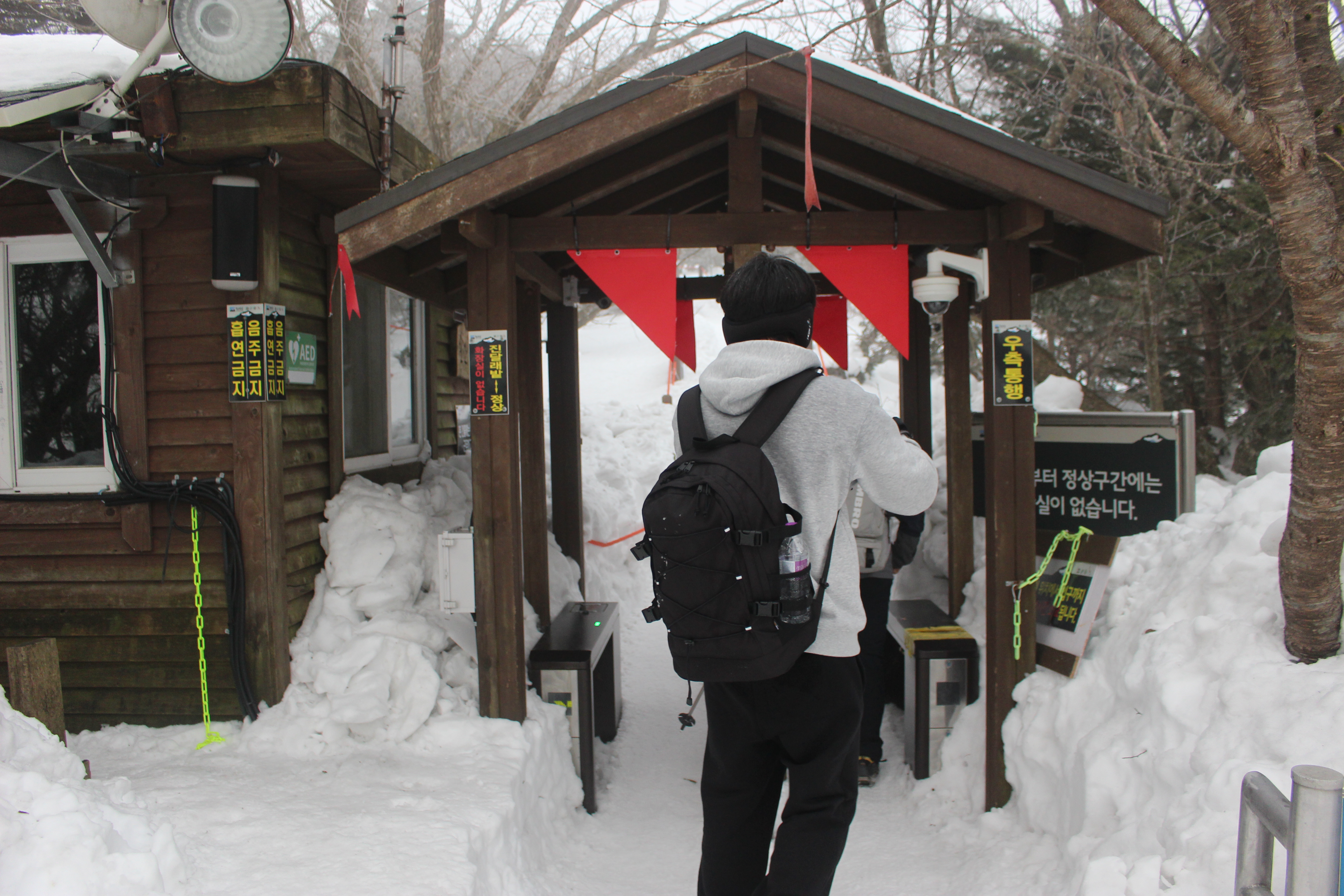 주위에 화장실도 있고 방송으로는 아이젠이 없으면 입산 불가를 방송이 계속 나오고 있어요