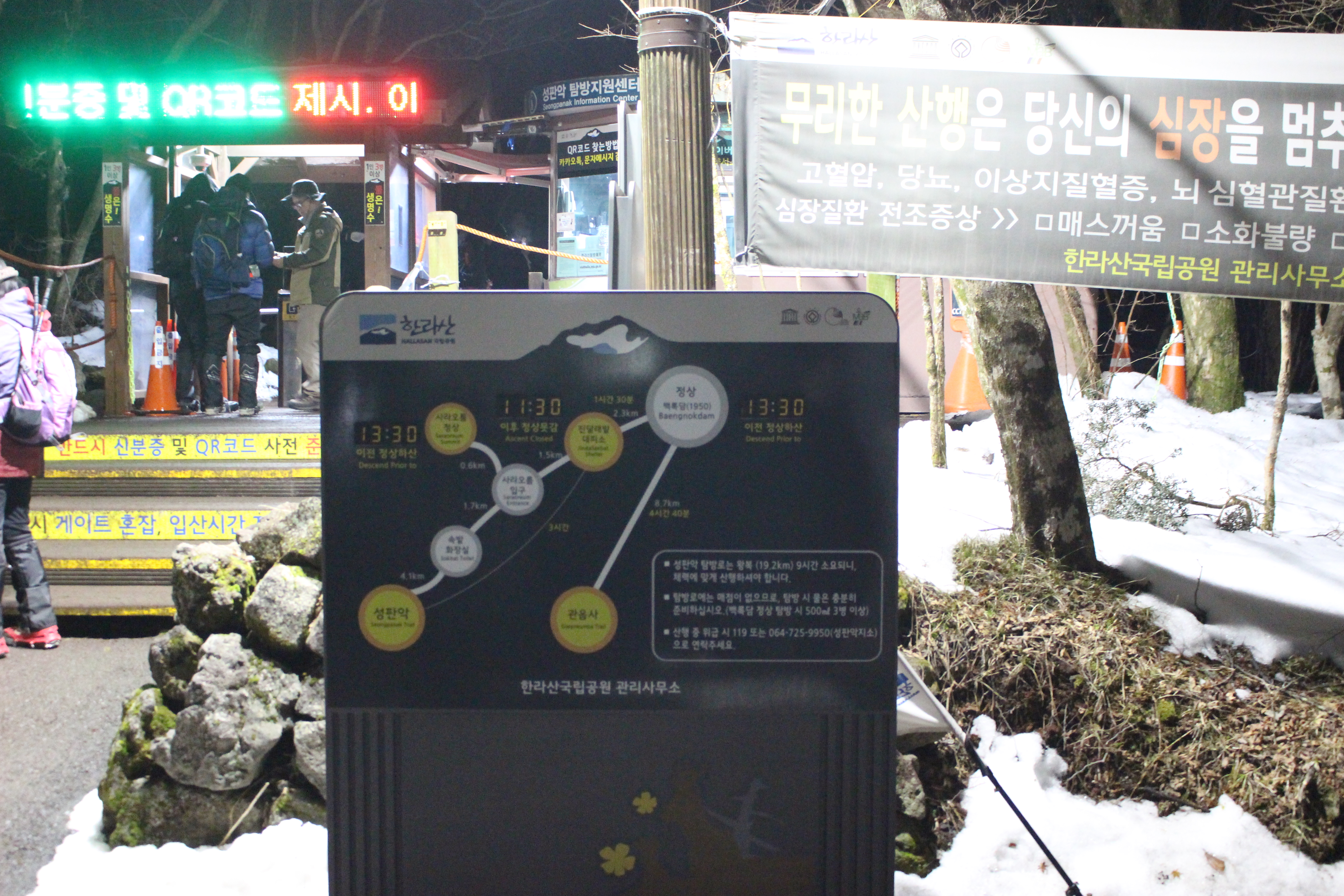 주위에 화장실도 있고 방송으로는 아이젠이 없으면 입산 불가를 방송이 계속 나오고 있어요