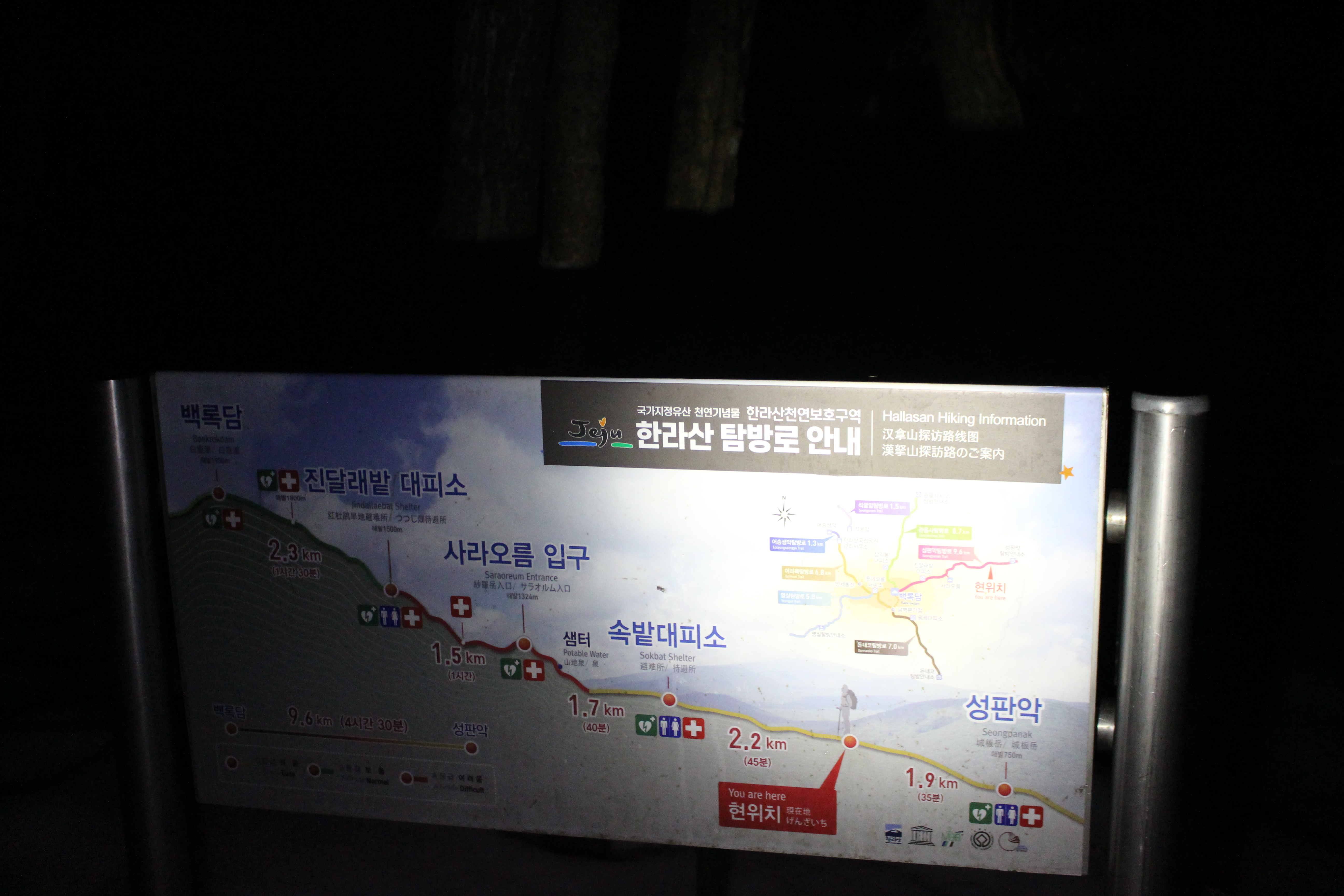 등산코스 : 성판악 탐방소 - 속밭대피소 - 진달래대피소 - 백록담