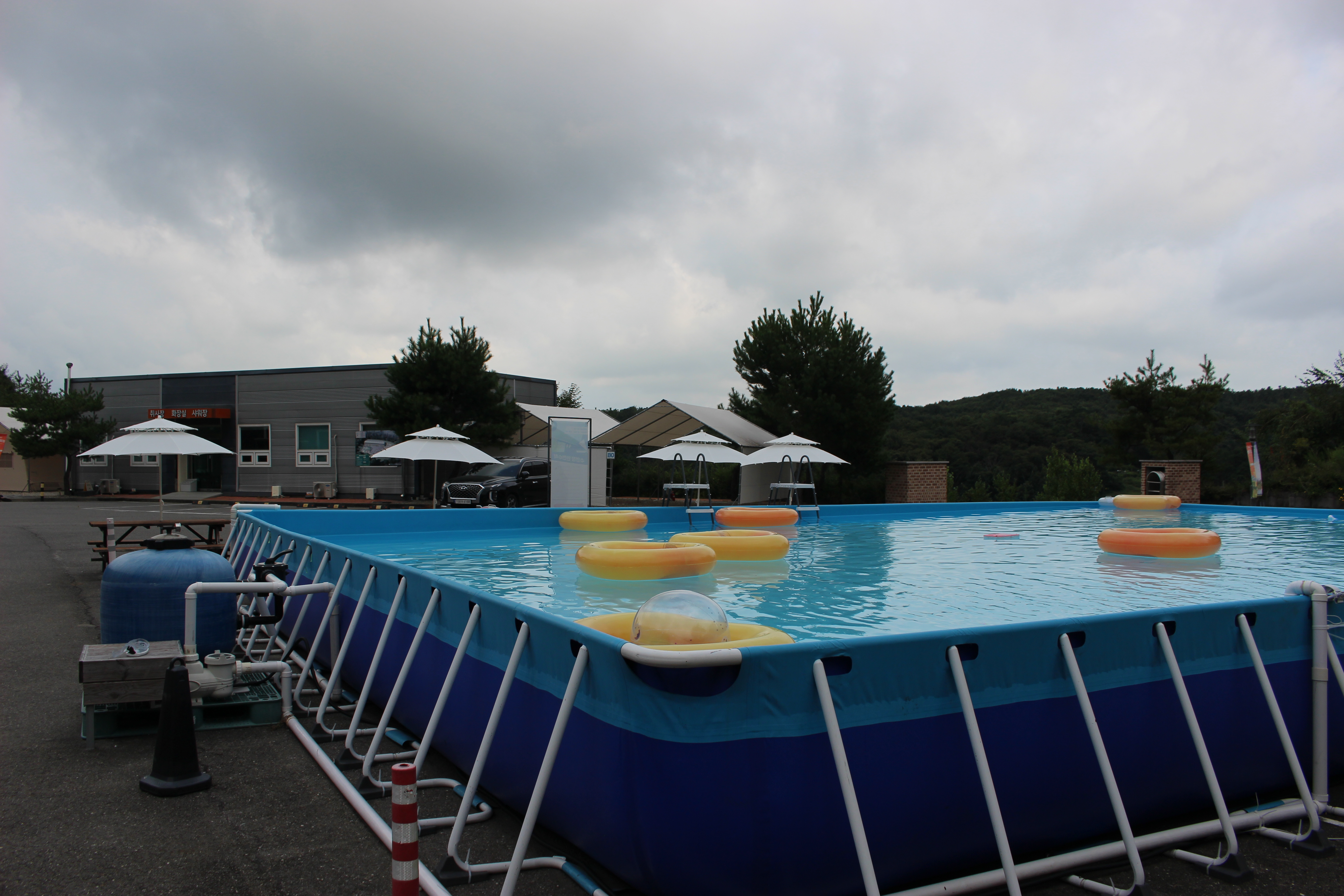 잔디광장과 물놀이장이 있어 아이들이 뛰어놀거나 물놀이하기 좋습니다. 특히 수영장 수질 관리가 잘 되어 있었어요.