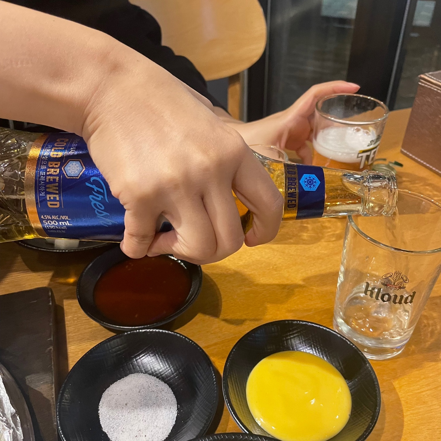 짭조름하게 찍어 먹을 수 있는 소금과 머스타드, 양념장을 준비해주세요!