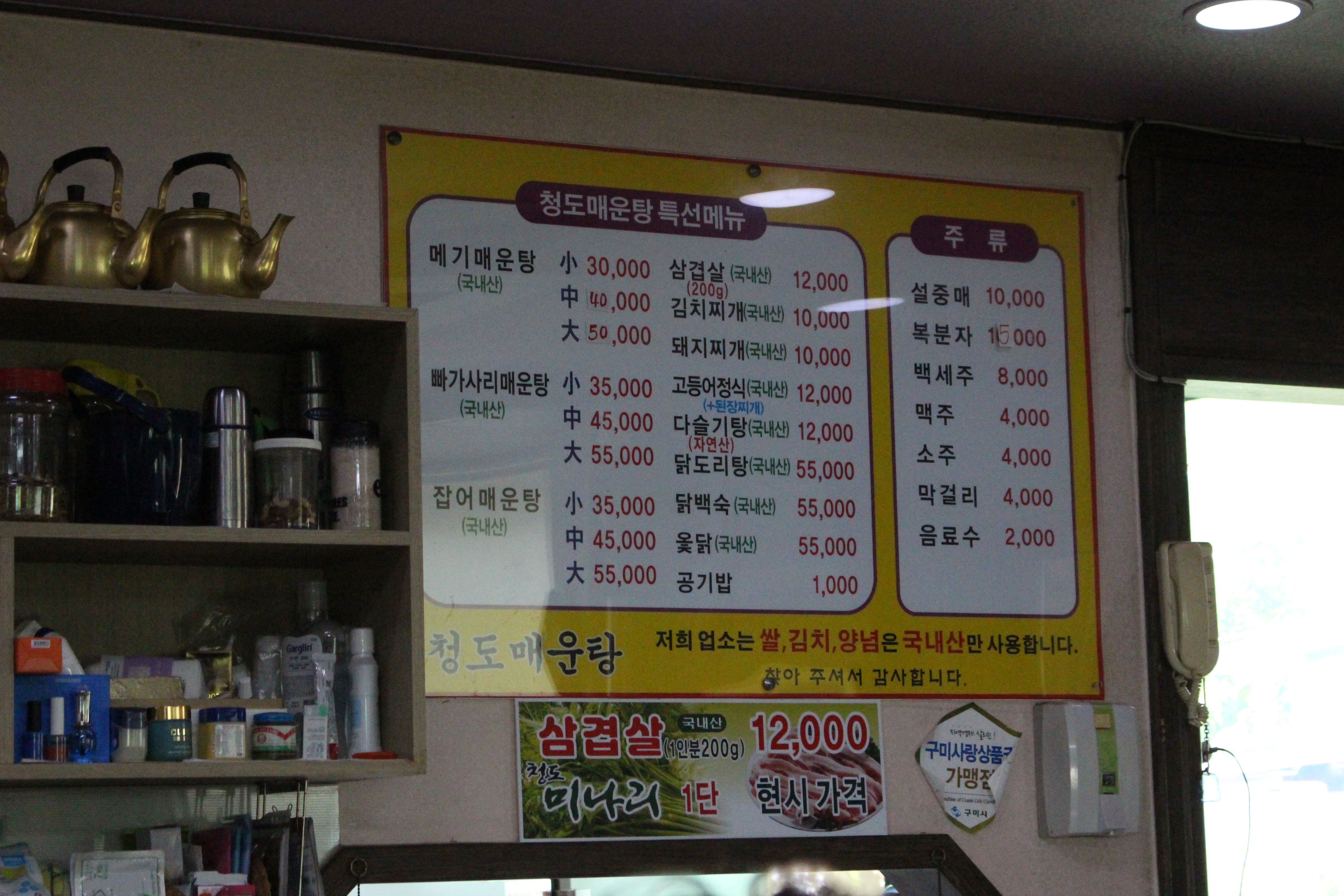 6. 삼겹살+미나리 조합이 12,000원 가격이였음.