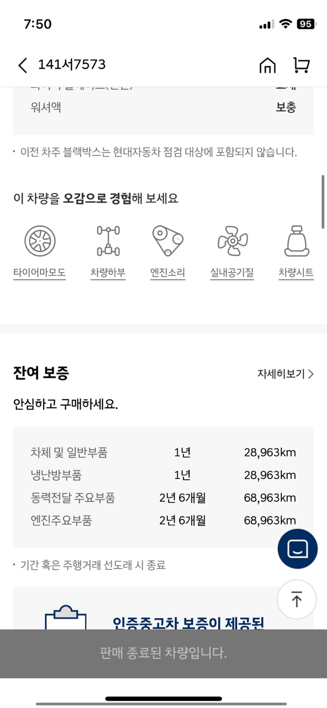 2022년식이다 보니 아직 보증이 남아있어서 현대자동차 신차를 구매한 사람과 똑같은 조건으로 혜택을 받을 수 있음.