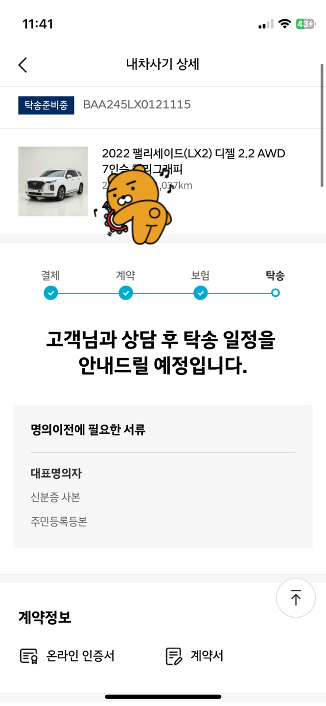 보험 서류를 등록하면 인증중고차에서 서류를 검토하고 다음 단계 "탁송"으로 변경이 되요!